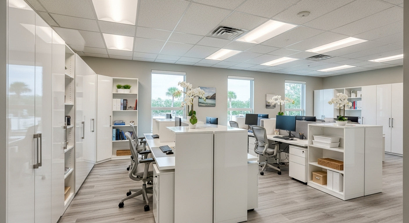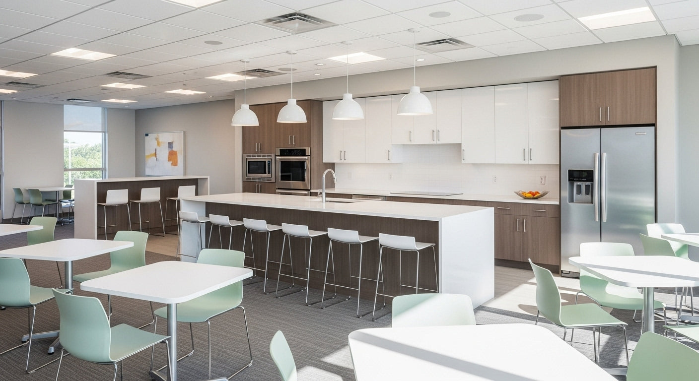 - Choose moisture-resistant or antimicrobial materials for break rooms or healthcare-adjacent spaces