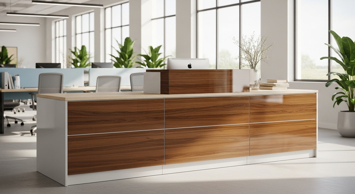 - Finishes matched to your brand palette, from matte laminates to natural wood stains