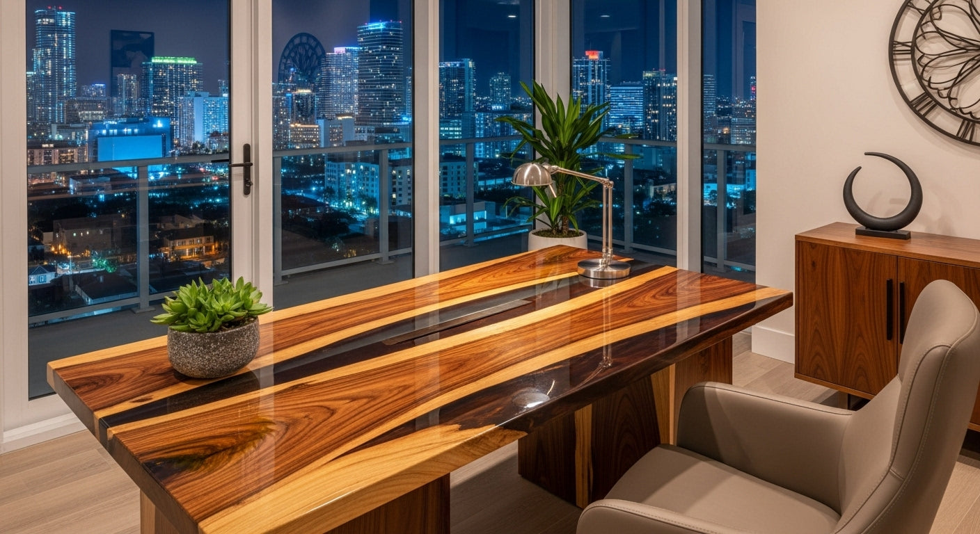 Each desk is unique, reflecting the natural beauty of wood and the creativity of epoxy design.