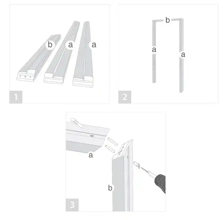 Installation is flexible and straightforward. The door arrives unbored and not pre-attached to a frame, allowing for full customization of swing direction and hardware placement. Assembly of the frame and trims is required. For rough opening calculations, simply add 2" to the door width and 1 1/2" to the door height.